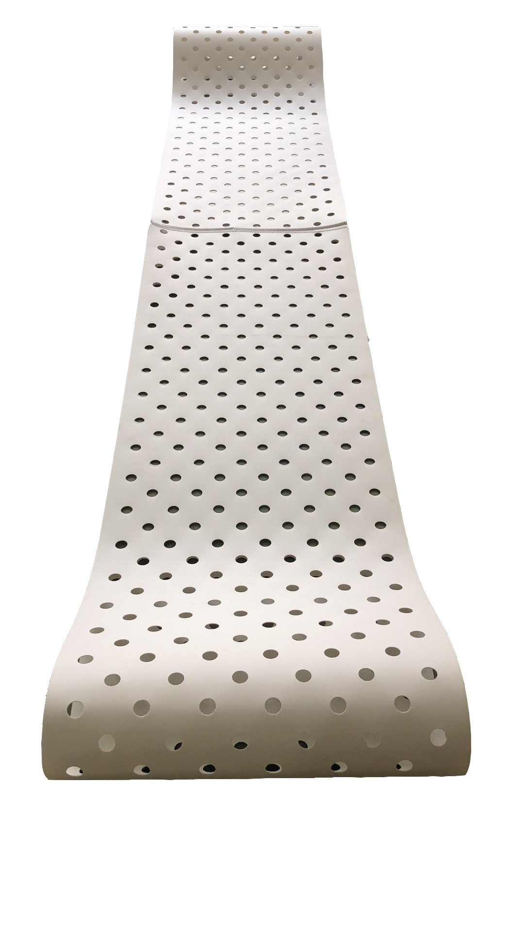 輸送帶打孔一般用在印刷、包裝、食品、農(nóng)產(chǎn)品等行業(yè)中,有吸風、分揀、定位、漏水、散熱等作用。