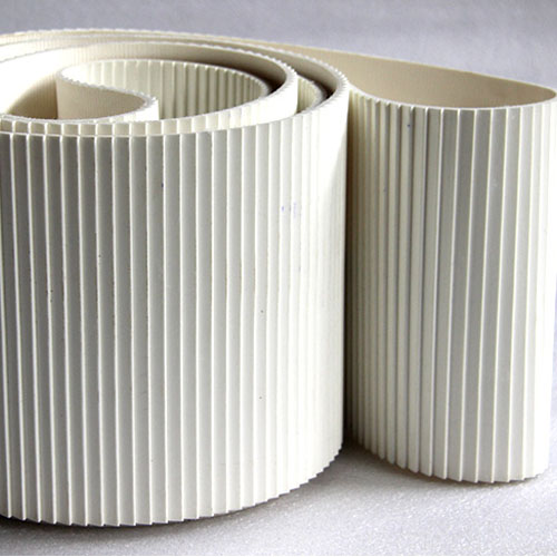 PVC輸送帶,其構(gòu)成為纖維布和PVC膠構(gòu)成。其工作溫度一般為-10度到+80度,有多種厚度,不同顏色,不同花紋,供多種不同場合的輸送。其接頭方式一般為國際齒形接頭、搭接或打鋼扣,橫向穩(wěn)定性良好適宜各種復(fù)雜環(huán)境下傳輸。
